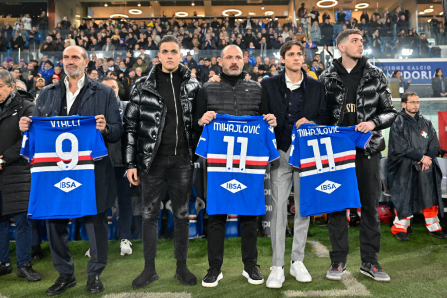Nešto kasnije na terenu su se pojavili njegov kum Dejan Stanković, trener Sampdorije, i Marko Lana, predsednik kluba, kao i sinovi Siniše Mihajlovića, Miroslav, Dušan i Nikolas. Držali su dresove sa brojevima 9 i 11, koje su nekad na leđima nosili bivši igrači tog tima, Mihajlović i Vijali. Na kragni su bila ispisana imena Luka i Siniša, a između njih simbol beskonačnosti.