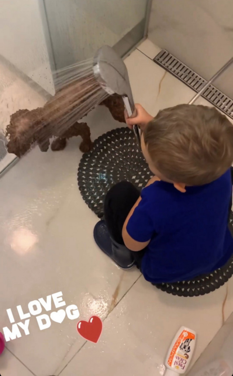Zorica Nakić snimila je Aleksandra dok kupa kućnog ljubimca i objavila fotografije na Instagramu uz poruku „I love my dog“.