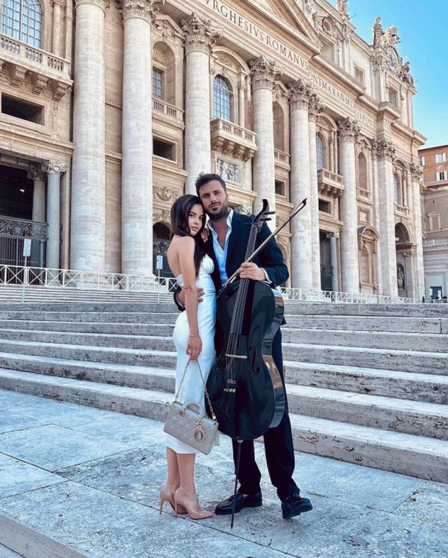 Popularni muzičar trenutno boravi u „večnom gradu“, gde je održao koncert u Vatikanu, koji je prenosila i televizija „Rai 1“. Podršku mu je pružila nova devojka, crnokosa lepotica po imenu Marija, rodom iz Ukrajine, čiju Instagram-stranu posvećenu zdravom životu i lepoti prati više od trideset hiljada ljudi.