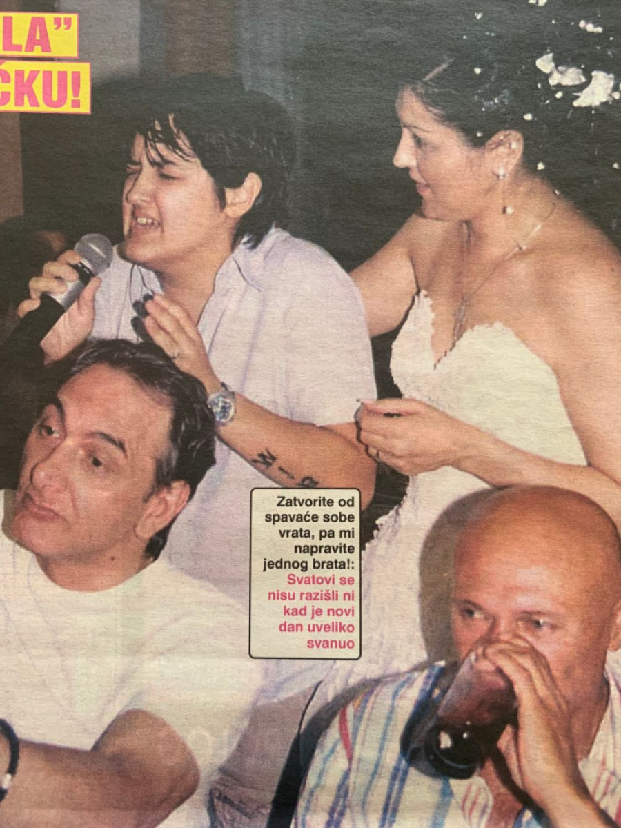Svadbenom veselju, u tada popularnom restoranu „Jezero“, prisustvovalo je oko četiristo zvanica, među kojima su bila najpoznatija imena folk-scene: Usnija Redžepova, Goca Božinovska, Zorica Brunclik i Kemiš, Džej, Keba, Seka Aleksić, Cune Gojković...