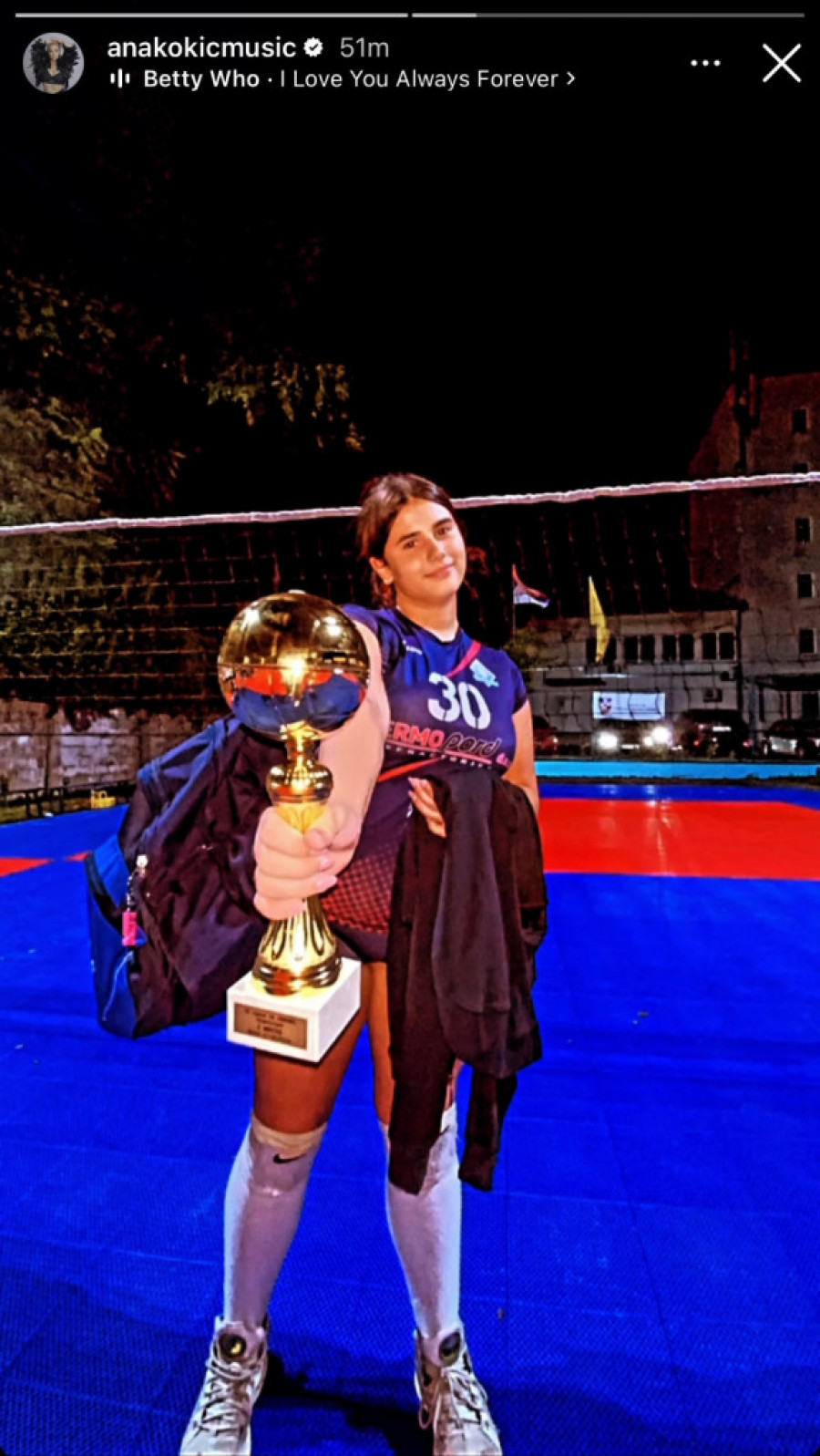 A riznici je upravo dodat još jedan trofej. Ponosna mama na Instagramu je objavila snimak u kojem vidimo Ninu u dresu, kako posle utakmice u kojoj je njen tim pobedio drži veliki pehar.