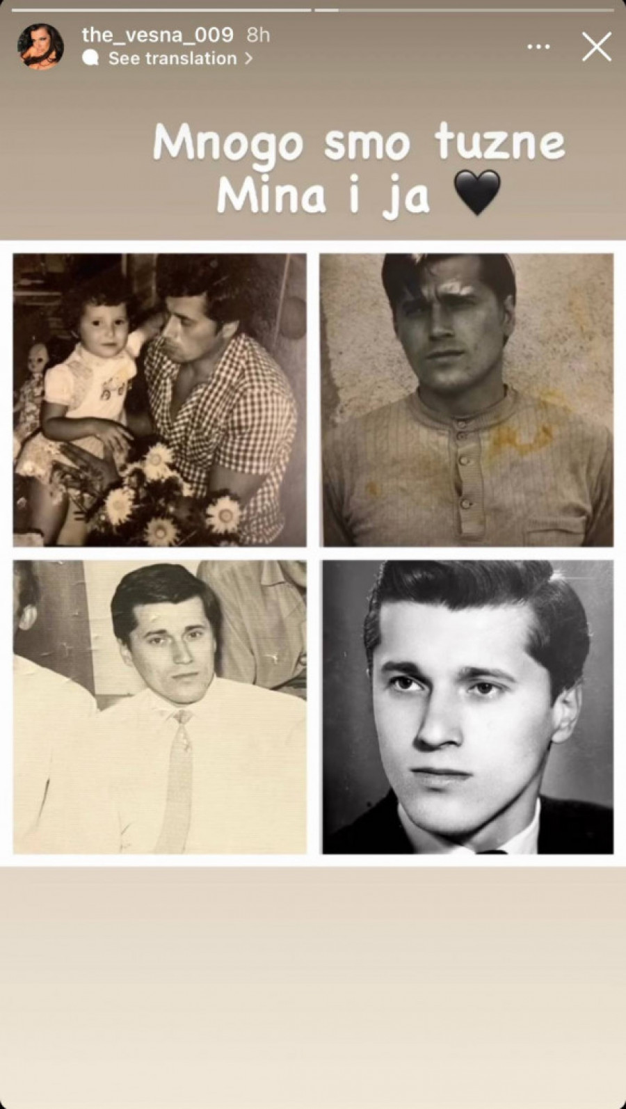 "Mnogo smo tužne Mina i ja", dodala je uz kolaž fotografija i istakla da je i ćerku koju je dobila u braku sa poznatim muzičarem pogodilo što je izgubila dedu.