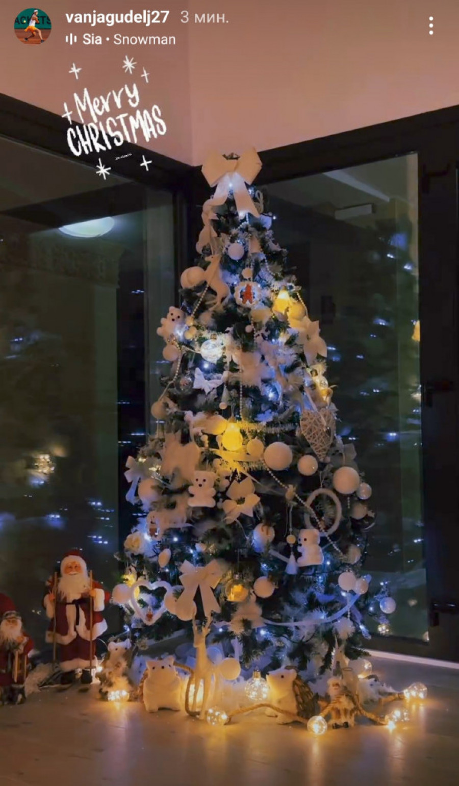 Veliko i raskošno drvo krasile su ogromne bele kugle, medvedići, široke mašne i svetlucavi beli biseri.