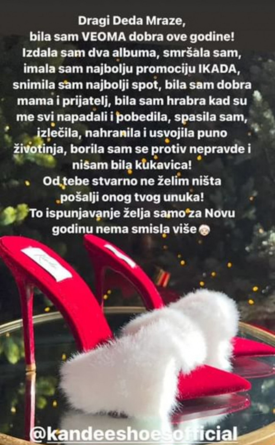Videćemo šta će reći Deda Mraz... U svakom slučaju, pevačica je spremna za doček najluđe noći i sve na njoj puca od optimizma, a ništa manje euforične nisu ni njene objave na Instagramu.