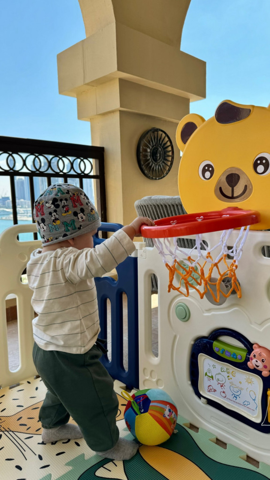 No, nije u pitanju tenis, bar ne za sada. Tu je, doduše, mala lopta, ali – košarkaška, dečja. Tu je i mini-koš.