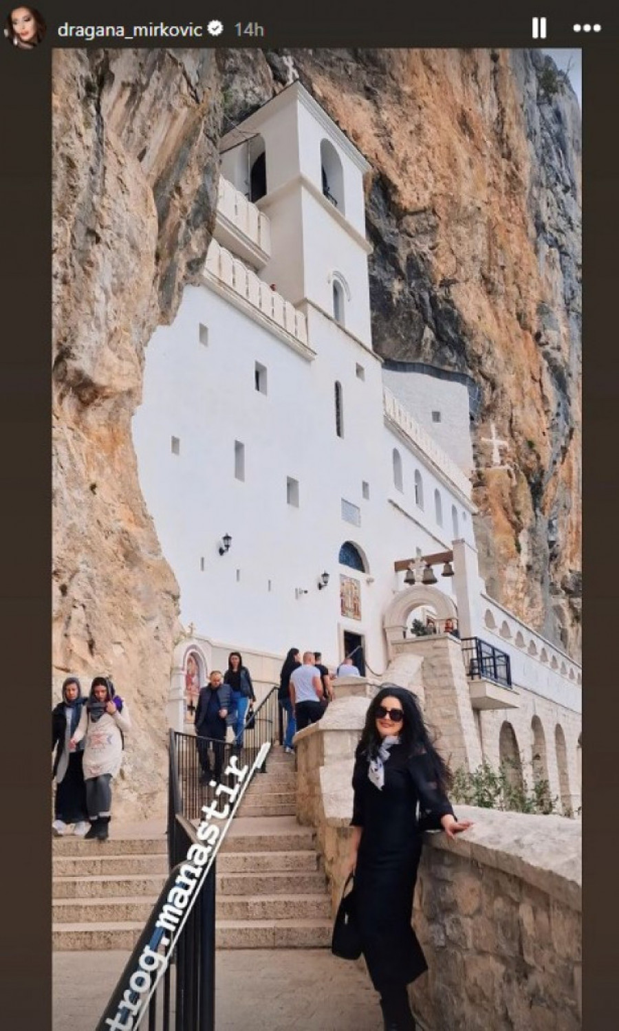 Hodočasnici znaju da do manastira, smeštenog uz skoro vertikalnu liticu na planini Ostroška greda, nije baš lako doći. Pevačica je do belog zdanja koje izgleda kao da je uklesano u stenu stigla sa svojom decom, i uz porodičnu fotografiju napisala četiri reči koje su sve rekle.