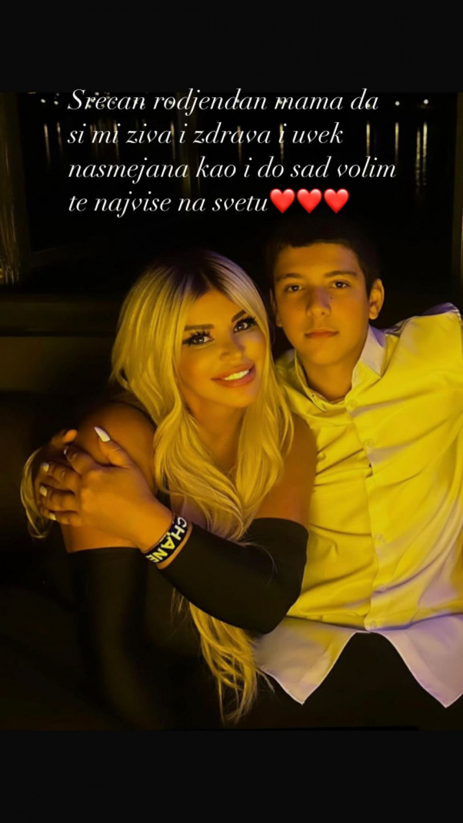 „Srećan rođendan, mama. Da si mi živa, zdrava i uvek nasmejana, kao i dosad. Volim te najviše na svetu!”