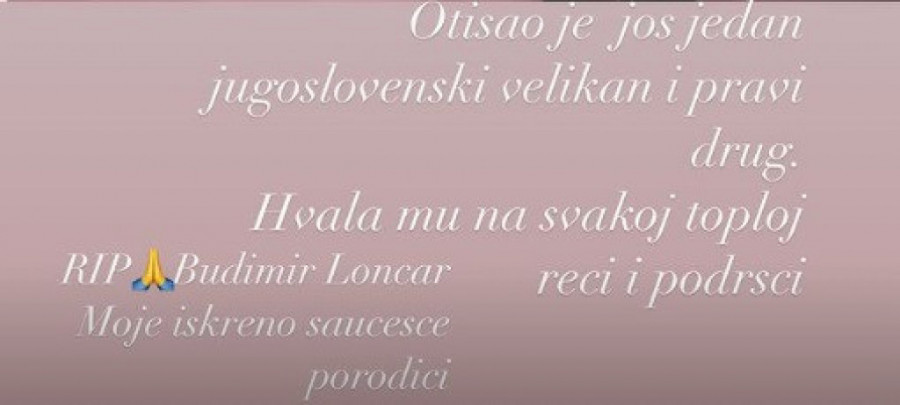 - Otišao je još jedan jugoslovenski velikan i pravi drug. Hvala mu na svakoj toploj reči i podršci. Počivaj u miru. Moje iskreno saučešće porodici - napisala je Brena u objavi na Instagramu.