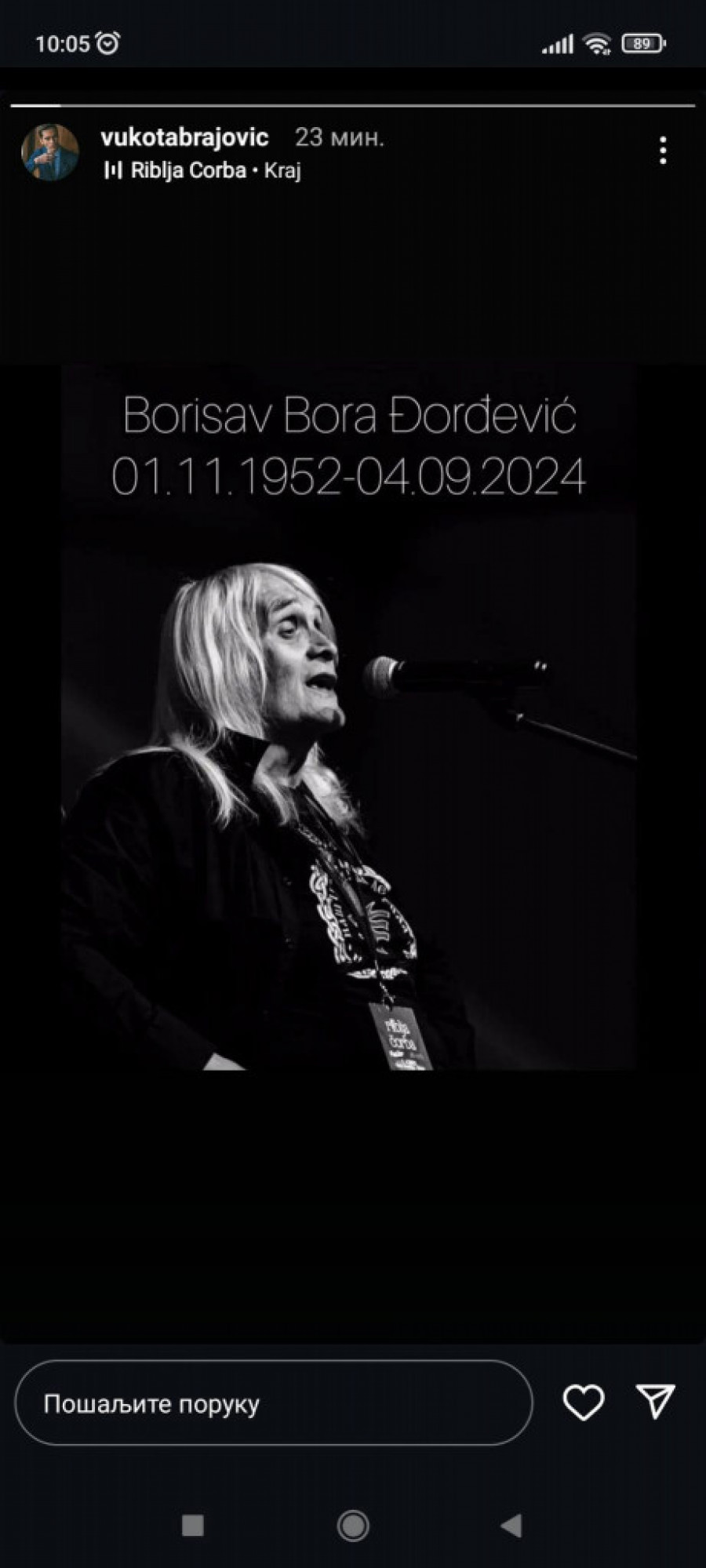 - Ovaj dan je počeo loše. Ode nam Bora Đorđević, nezamenljiv, opor i sladak, romantik i buntovnik. Putuj mirno, dragi druže. Zbogom.