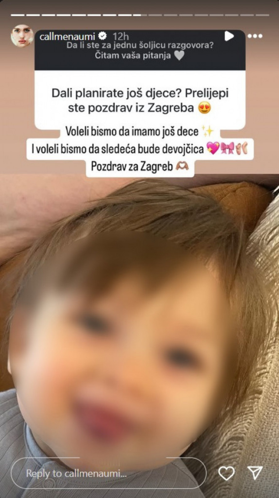 Naime, Mina Naumović je na Instagramu istakla da bi ona i Ognjen voleli da imaju još dece.