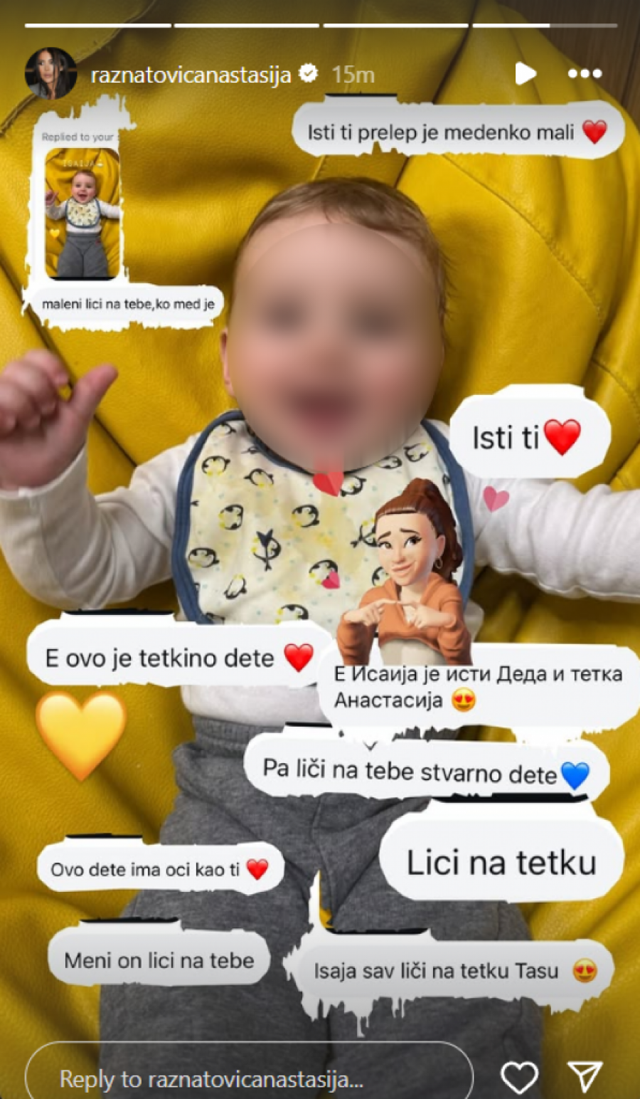 "Isti ti, prelep je, medenko mali", "Isaija isti deda i tetka Anastasija", "Isaija sav liči na tetka Tasu", "Ovo je tetkino dete", "On ima tvoje oči", samo su neki od komentara.
