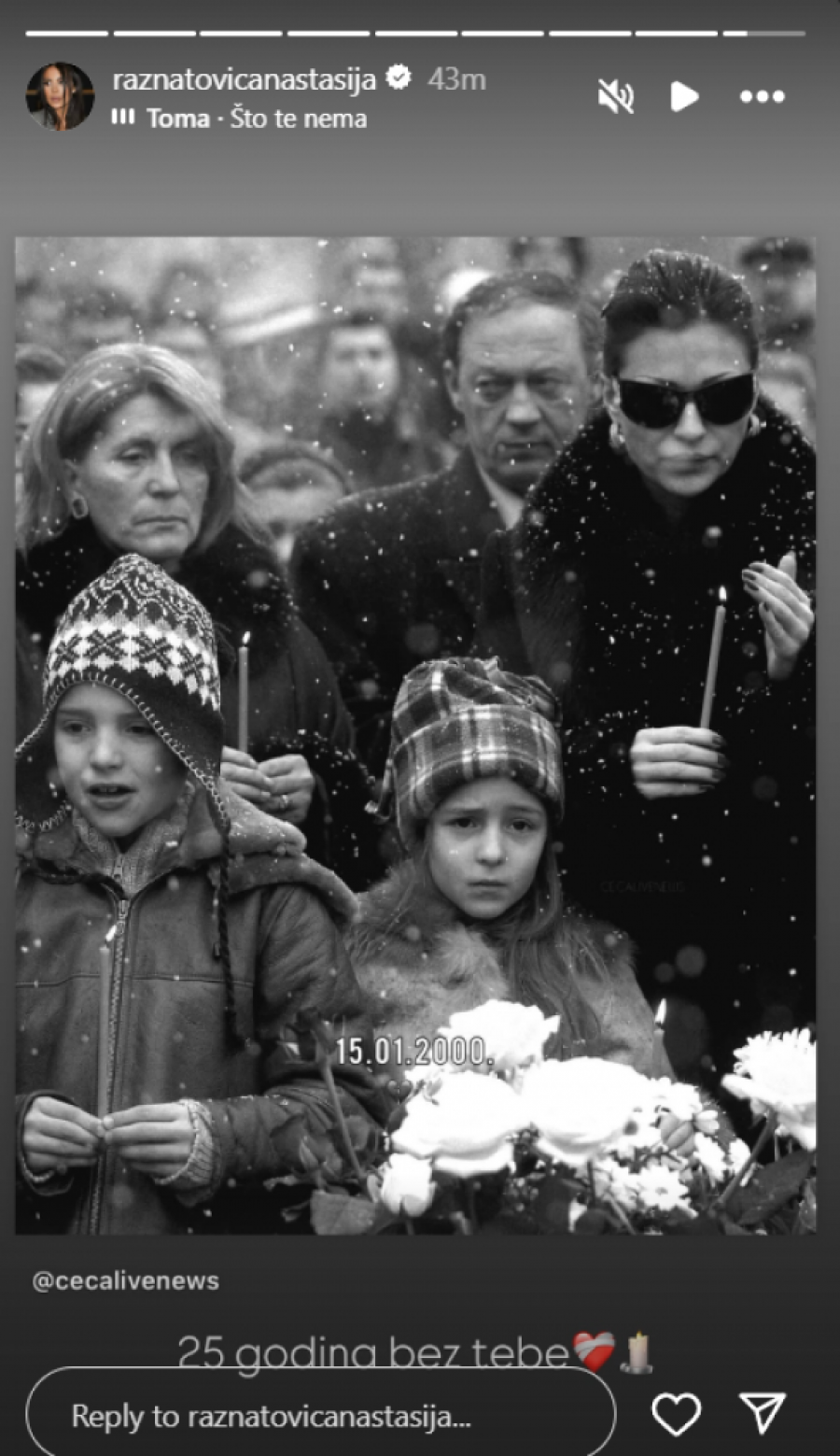 Anastasija Ražnatović tužna je danas, kao i svakog 15. januara koji je u životima Ražnatovića obeležen kao najtragičniji dan.