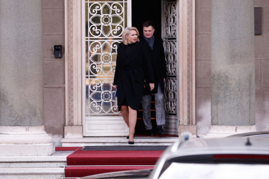 Fotografi su je „uhvatili“ dok je izlazila iz zgrade Predsedništva Srbije. S obzirom na vremenske uslove – jak vetar i temperaturu u minusu – crni kaput koji tek neznatno prekriva kolena pokazao se kao odličan izbor.