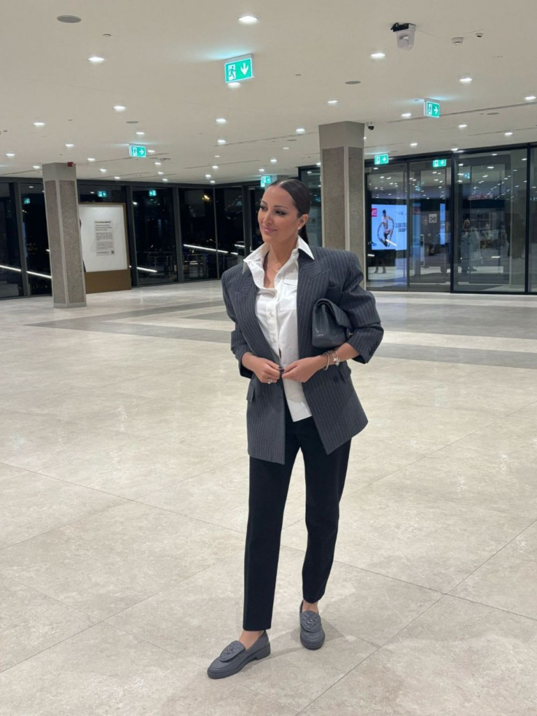 Nedavno se pojavila u neobičnom sivom sofisticiranom odelu na pruge koje je savršeno naglasilo njen stavi i eleganciju.