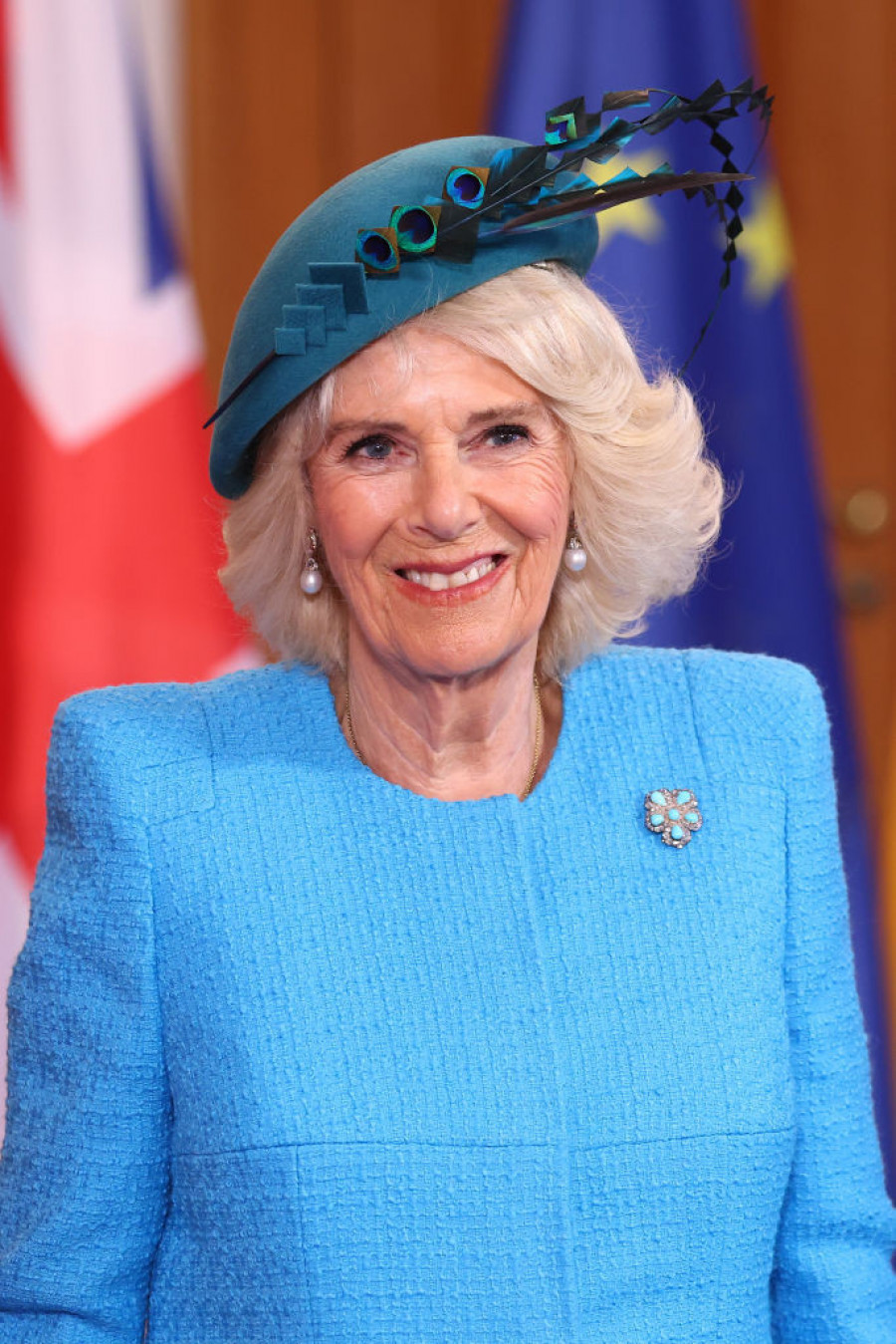 Reč je o brošu sa tirkiznim kamenjem koji je, kako se navodi, kraljici Elizabeti poklonjen 1941. godine, deceniju pre nego što je došla na presto Velike Britanije. Kamila nije slučajno odabrala baš ovaj komad nakita. Ne samo da se slagao sa njenim plavim kompletom, već oblik i boja podsećaju na nacionalni cvet Nemačke ‒ njivski različak.
