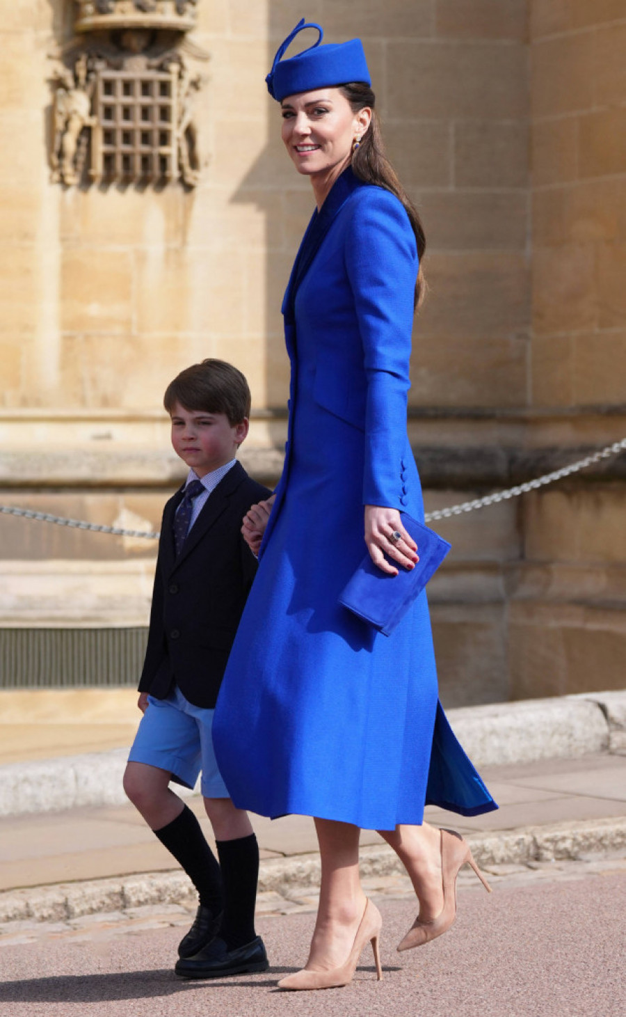Princ Vilijam i Kejt Midlton odlučili su da to svečano nedeljno podne oboje u plavo. Lepa princeza blistala je u kraljevskoplavoj mantil-haljini sa šeširom i tašnom u istoj nijansi. I minđuše su imale plave safire. Jedino su cipele bile u drugoj boji, u bež varijanti.