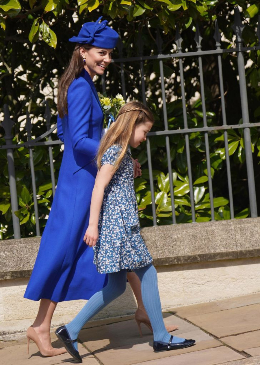 Princeza Šarlot odabrala je svetloplavu haljinu cvetnog desena, plave hulahopke i teget kaput. Princ Luis, ovog puta prilično miran, nosio je svetloplave bermude, dok je najstariji Džordž, koji se polako priprema za ulogu kralja, oduševio prisutne u elegantnom odelu, kakvo je imao i njegov otac. Naravno, bio je tu i plavi detalj – kravata.