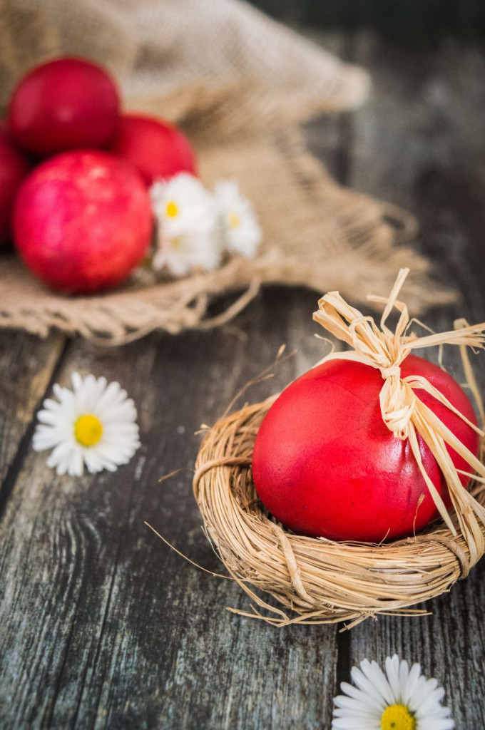 Razolg leži u verovanju da su jaja u trenutku Isusovog vaskrsnuća postala crvena. Zato se ova boja najviše i koristi pri oslikavanju.