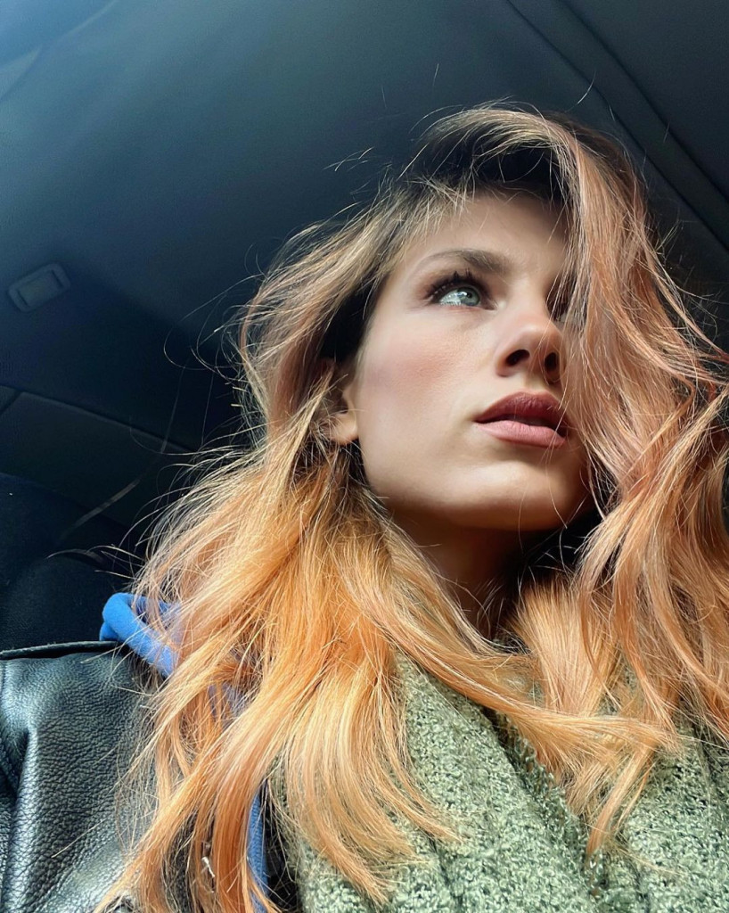 Plave pramenove Nevena je prefarbala vatrenom nijansom crvenkasto-narandžaste i tako još više istakla svoj besprekoran ten i plave oči.