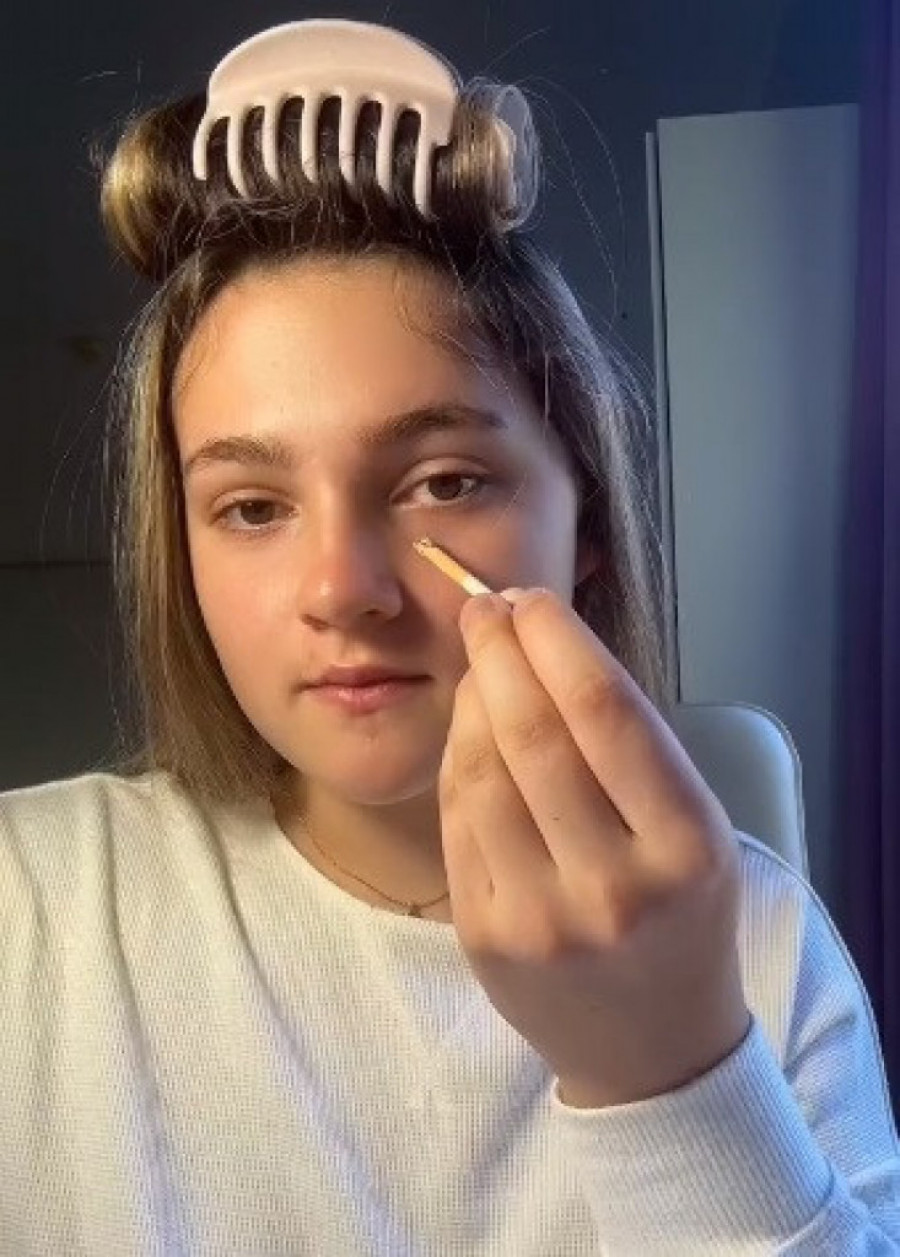 Ćerka Jelene Karleuše i Duška Tošića vrlo vešto barata četkicama, puder gotovo i da ne koristi, već korektor nanosi samo na određene tačke lica.