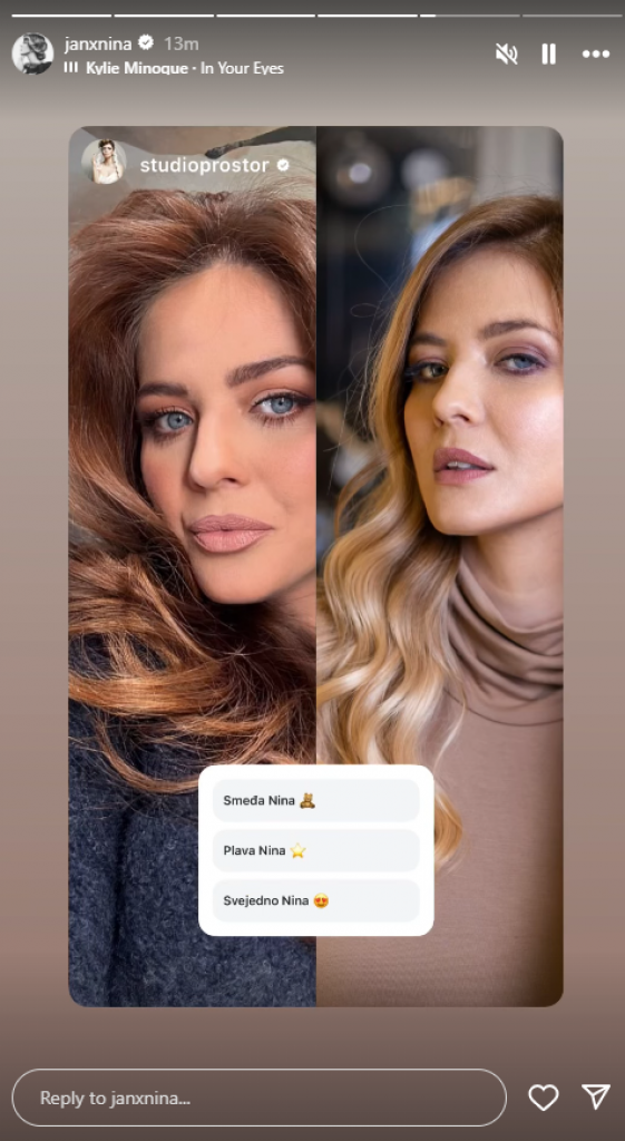 "Savršeno ti stoji!", "Prelepa si, ova boja je pun pogodak!", "Kao prava filmska diva!" - samo su neki od komplimenata koji su se nizali na račun nove boje Ninine kose u komentarima ispod objave, zbog koje svi znaju da je Nina Janković promenila frizuru.