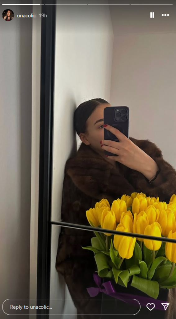 Una Čolić je za Dan zaljubljenih dobila prelep buket žutih lala, povezan širokom, satenskom ljubičastom mašnom. Ono što je posebno iznenadilo njene pratioce jeste da se fotorafisala bez šminke i sa vezanom kosom.