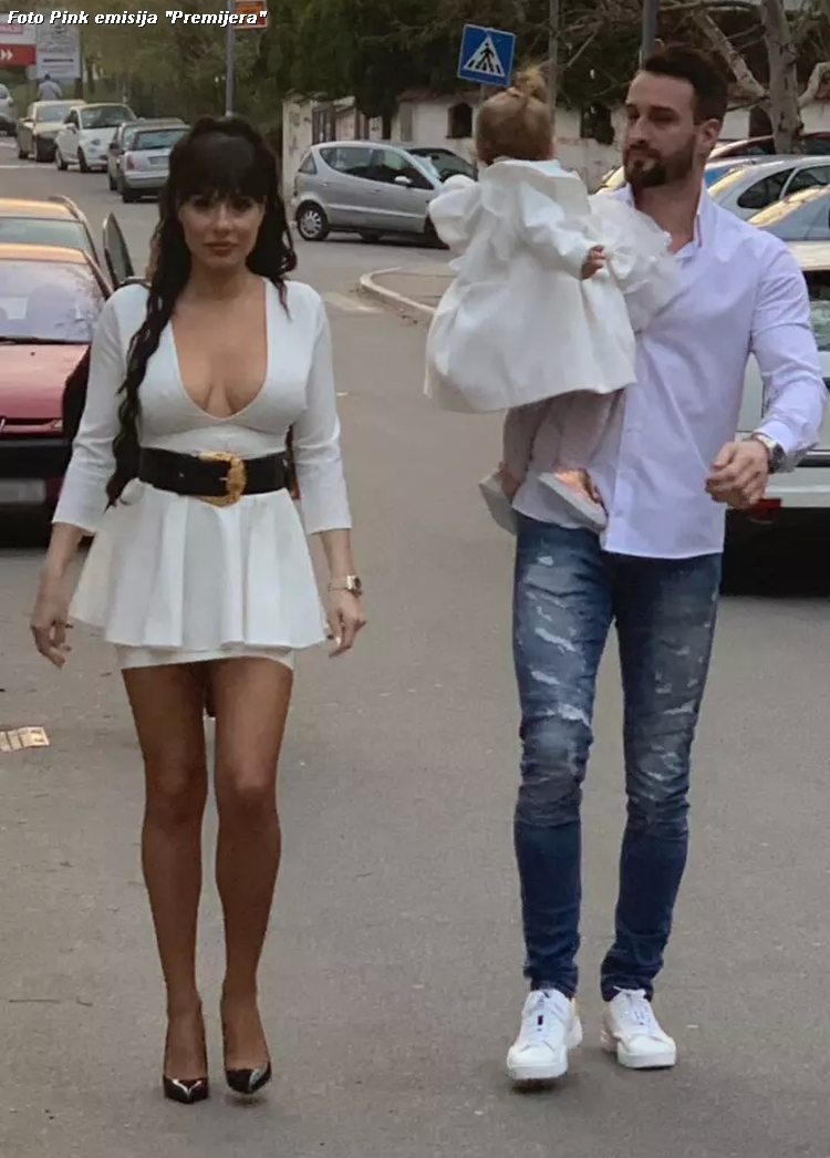 Oni su za prvi Emin rođendan priredili pravo slavlje, a za ovu priliku Mia je sebe i Emu obukla u bele haljine, dok je ponosni tata Bojan za ovu priliku odabrao belu košulju i farmerke.