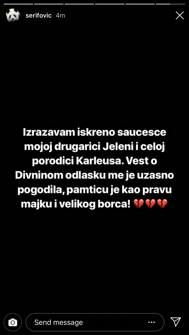 Kao bomba odjeknula je vest o preranom i neočekivanom odlasku Divne Karleuše, koja je pogodila mnoge koji su je poznavali. Vest je posebno teško pala Mariji Šerifović, koja se na društvenim mrežama oprostila od Divne.