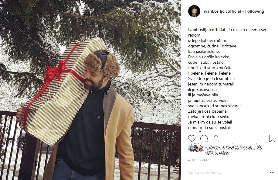 Tata je za svoju mezimicu kupio pozamašan poklon, a mama Jelena ga je tako nasmejanog i raspoloženog fotografisala. Uz fotografiju je podelio i stihove Mike Antića koji su upotpunili ovu priču.