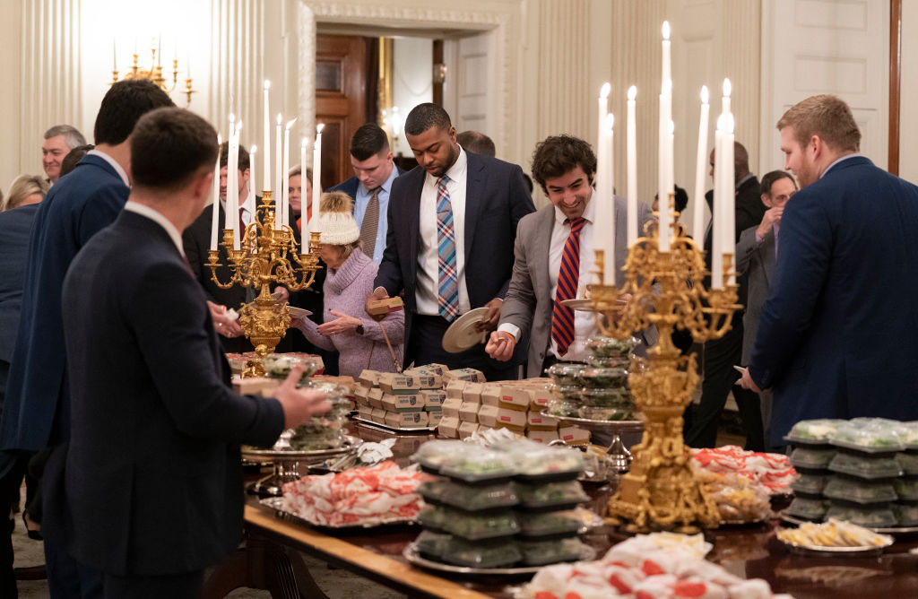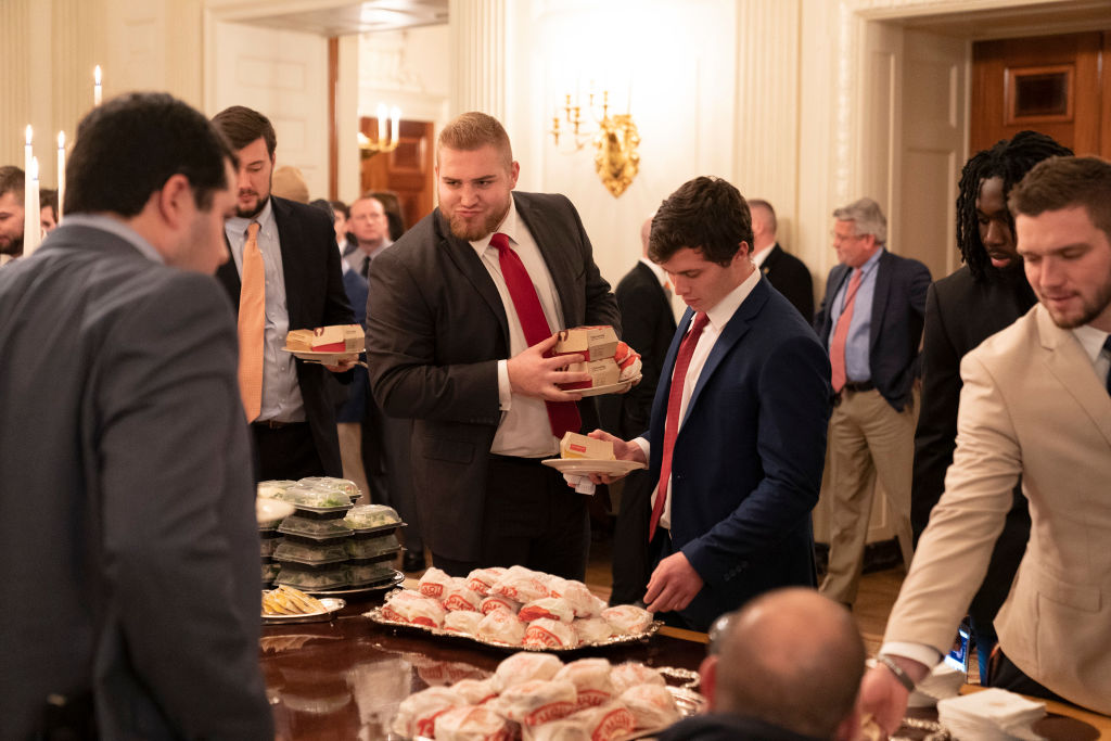 Koledž šampione u američkom fudbalu, tim "Klemson Tajgersa", Tramp je dočekao sa više od 300 burgera i pomfrita, a tu su negde bile i pice, prenosi BBC.