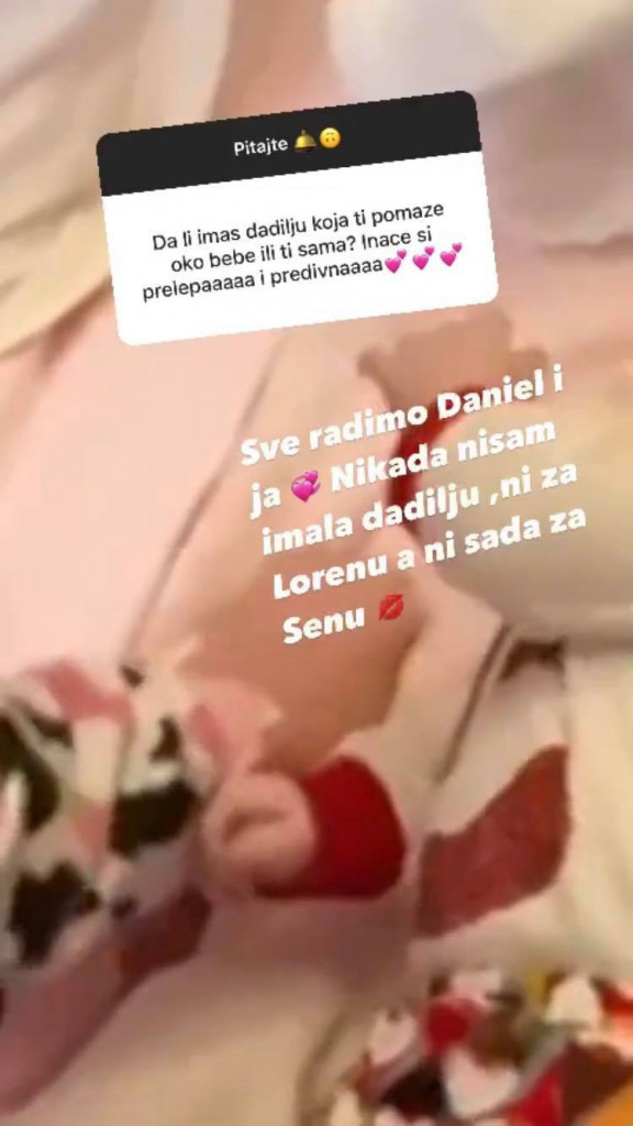 Ana je govorila o raznim temama, a ono što je najviše privuklo pažnju je da ona i Danijel nemaju nikakvu pomoć oko bebe, pa je pevačica istakla da ni sa prvim detetom nikada nije imala dadilju, već da u odrastanju svojih mezimica uživa isključivo sa partnerom.