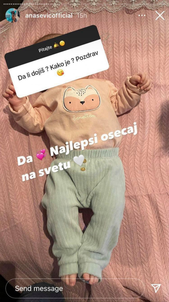 Pevačica Ana Sević pamtiće prethodnu godinu po najlepšem poklonu, ćerki Seni koja sada ima puna tri meseca. Ana i njen verenik Danijel Nedeljković u jeku pandemije virusa korona željno su iščekivali naslednicu, a Sevićeva se posle duže vremena obratila pratiocima na „Instagramu“ i porazgovarala sa njima.