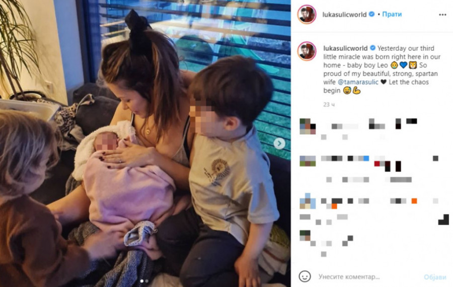 Luka Šulić postao tata i to po treći put, a njegova supruga Tamara odlučila je da sina na svet donese ne u bolnici, već kod kuće.