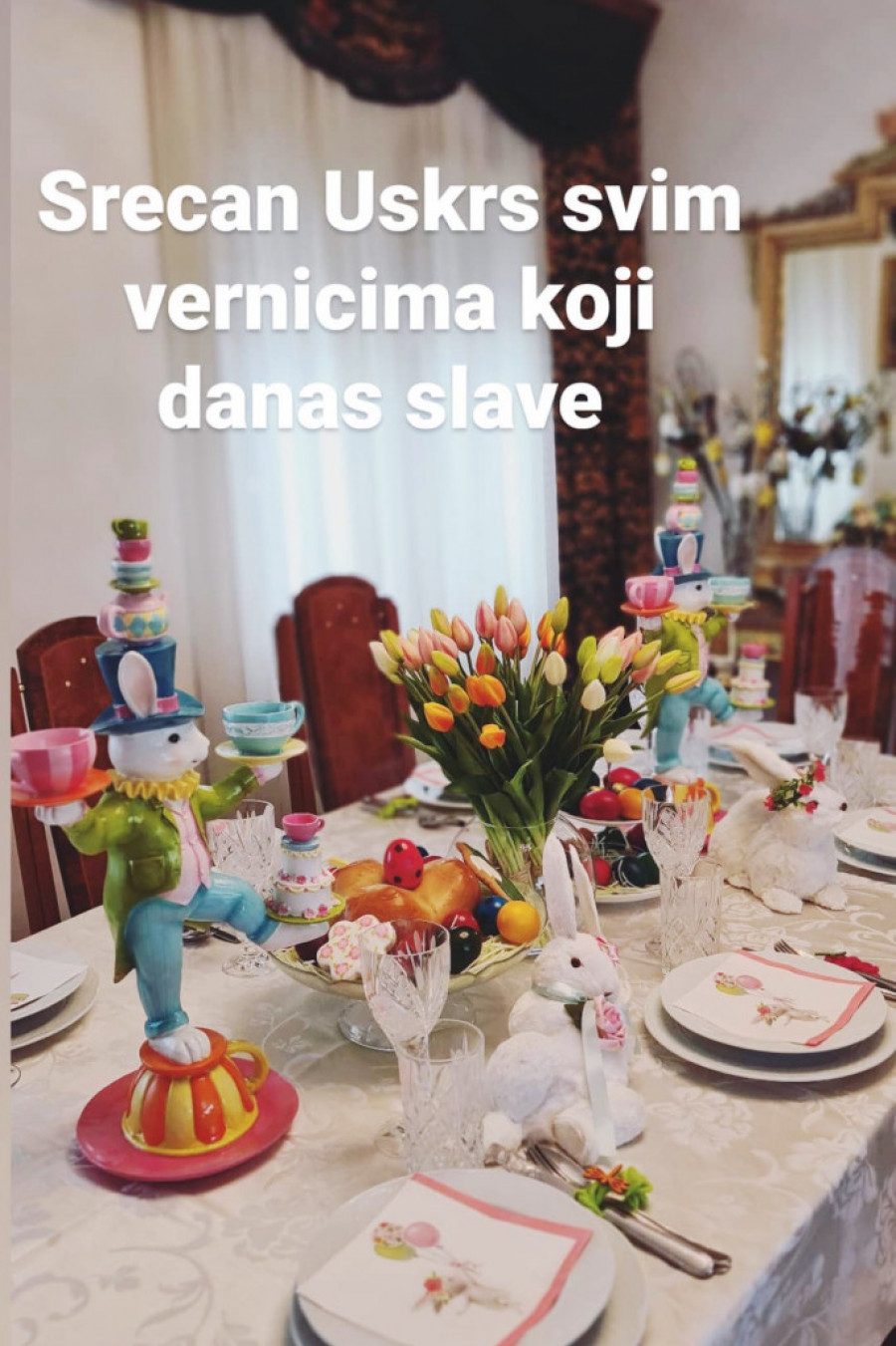 Delić atmosfere podelila je sa prijateljima na „Instagramu“, otkrivši kako izgleda dekoracija stola. Šarena jaja, figure zečeva, cveće – sve je spremno za svečani ručak kojim će sa suprugom Tonijem Bijelićem i decom, sinom Markom i ćerkom Manuelom, obeležiti najveći hrišćanski praznik.