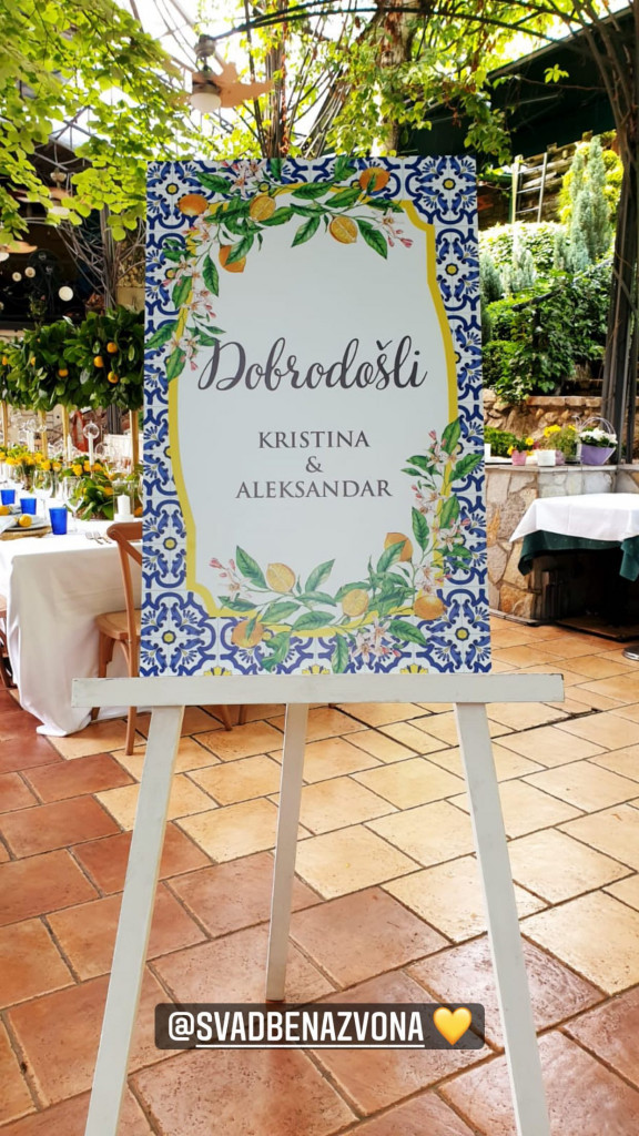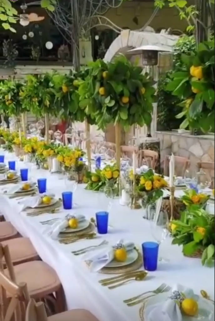 Dekoracija je bila u plavo-žutim nijansama, a posebnu pažnju privukli su stolovi ukrašeni raskošnim buketima ruža i limunima.