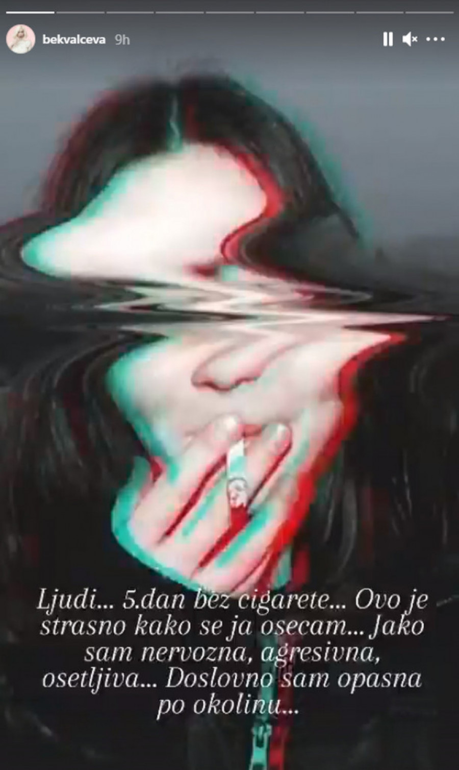 Da je godinama pokušavala da promeni jednu stvar u životu dokaz su svi oni koji vole i znaju Natašu Bekvalac. Pevačica je poznata kao strastveni pušač. Iako je često pokušavala, nije joj polazilo za rukom da cigarete zauvek ostavi. Ali noćas je „pukla“, u pravom smislu reči, i posle pet dana pušačke apstinencije iskreno napisala kako se oseća.