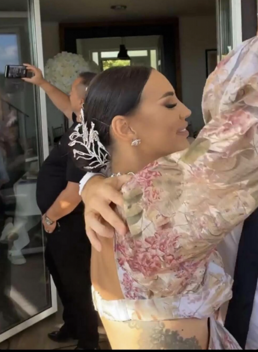 Kako je želela da se uda u haljini koja nije venčanica, mlada je za ovu priliku odabrala cvetnu haljinu dugačkih rukava i otvorenih leđa koja joj je savršeno pristajala.