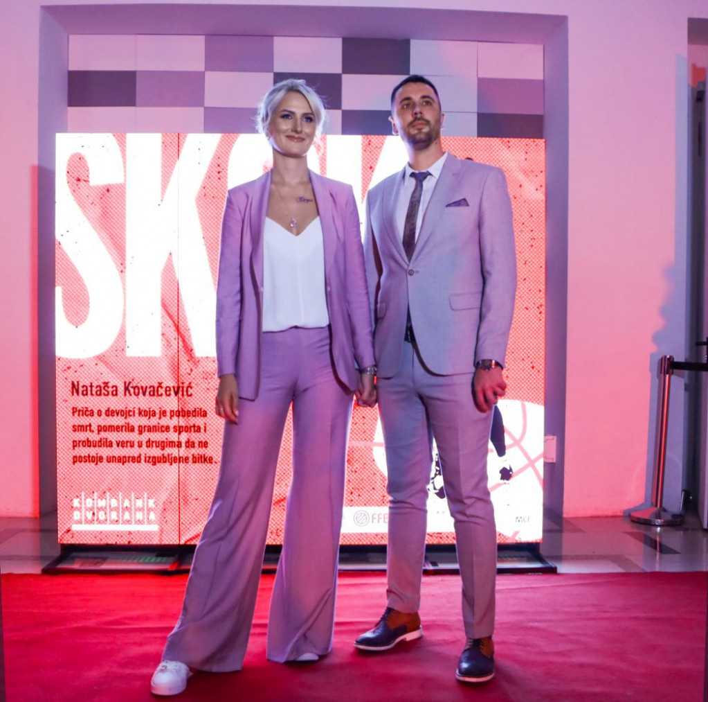 „Hvala svima koji su došli na premijeru filma 'Skok'. Nadam se da ste uživali, a film od danas možete da pogledate u svim bioskopima u Srbiji. Javljajte vaše utiske“, napisala je hrabra i sjajna Nataša Kovačević na profilu na „Instagramu“, a osim o snažnom i nikad viđenom filmskom ostvarenju, svi su pričali o markantnom muškarcu, koji je Natašu pratio u stopu.