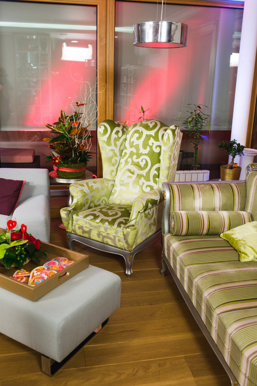 Stilski nameštaj u centralnoj prostoriji je u zelenim tonovima, a dodatnu toplinu daju brižljivo izabrani detalji, među kojima se izdvajaju ne samo nagrade koje je Ana dobila u dugogodišnjoj karijeri, već i profesionalna priznanja njenog životnog saputnika.