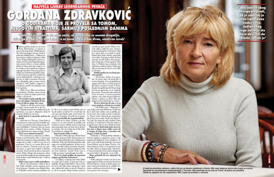Trideset godina prošlo je od smrti Tome Zdravkovića, a o njemu se govori više nego ikada. Mlađe generacije otkrivaju njegove pesme, stariji se prisećaju velikih hitova... Velikom interesovanju svakako je doprineo i film “Toma”, Dragana Bjelogrlića, koji je neobičnu životnu priču legendarnog pevača ponovo doveo u centar pažnje. Kakav je Toma zaista bio, koga je voleo i kako je živeo pitali smo njegovu suprugu Gordanu, koja je na pomen, održan na Centralnom groblju, doputovala iz Toronta, gde živi sa njihovim sinom Aleksandrom. S obzirom na to da smo se našli u restoranu “Dva jelena”, u „Skadarliji”, gde je nastao čuveni snimak iz 1987. godine, razgovor sa Gordanom počeli smo pitanjem seća li se tog dana.