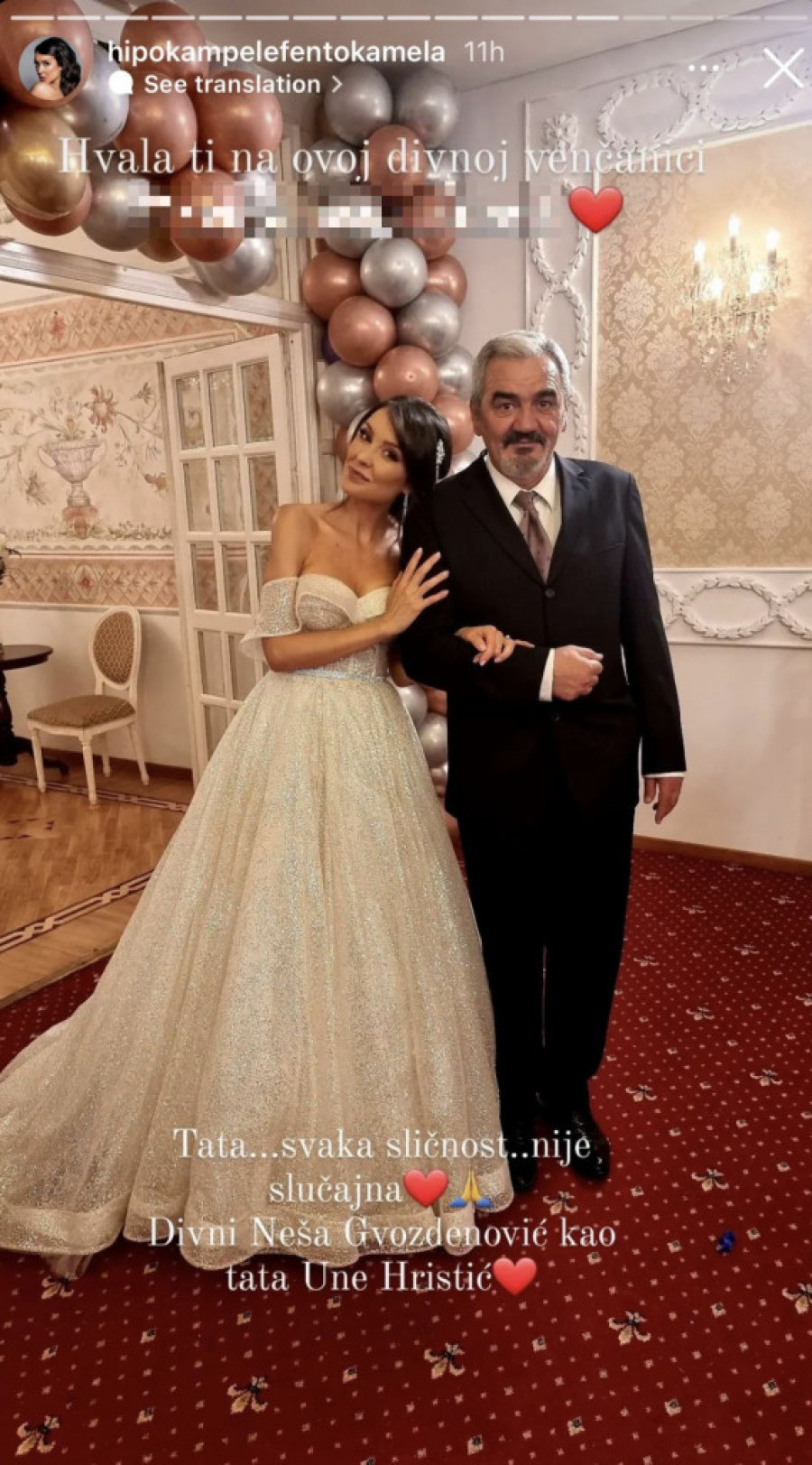 Dragana je uspela da rasplače pratioce jer je osoba sa kojom je na fotografiji, i koja ju je odvela do oltara, likom isti njen prerano preminuli otac, naš proslavljeni glumac Dragan Mićalović.