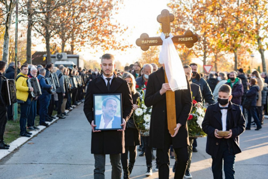Legenda narodne muzike pevač Marinko Rokvić sahranjen je danas na Novom bežanijskom groblju. Njegova poslednja želja bila je da počiva pokraj voljenog oca, a supruga Slavica i sinovi Nikola i Marko ispunili su Marinkovu želju.