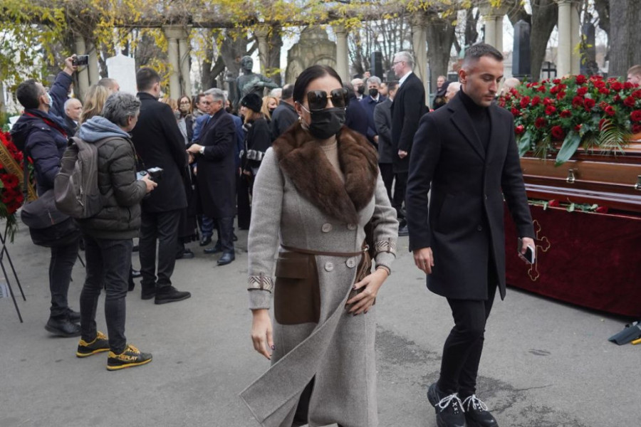 Dugogodišnja partnerka Milutina Mrkonjića prevačica Ana Bekuta, vidno slomljena jedva je stajala na nogama. Uz podršku sina Igora i unuka Branka i Sonje smogla je snage da isprati svog voljenog Mrku i kaže mu poslednje zbogom.
