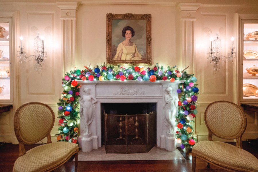 Poslednjih dana novembra priredila je svečani doček jelke dopremljene sa jedne farme u Severnoj Karolini. Pored glavnog drveta, postavljenog u „Plavom salonu“, u novogodišnjoj bajki učestvuje još četrdeset manjih stabala, oko deset hiljada ukrasa sa raznim motivima, osamdeset hiljada lampica, trista sveća, skoro dve hiljade metara ukrasnih traka, trideset venaca i – stotinak volontera. Dve veće jelke u Istočnom krilu okićene su fotografijama članova bivših prvih porodica. Na opšte iznenađenje, gospođa Bajden nije zaboravila ni Donalda Trampa i njegovu suprugu.