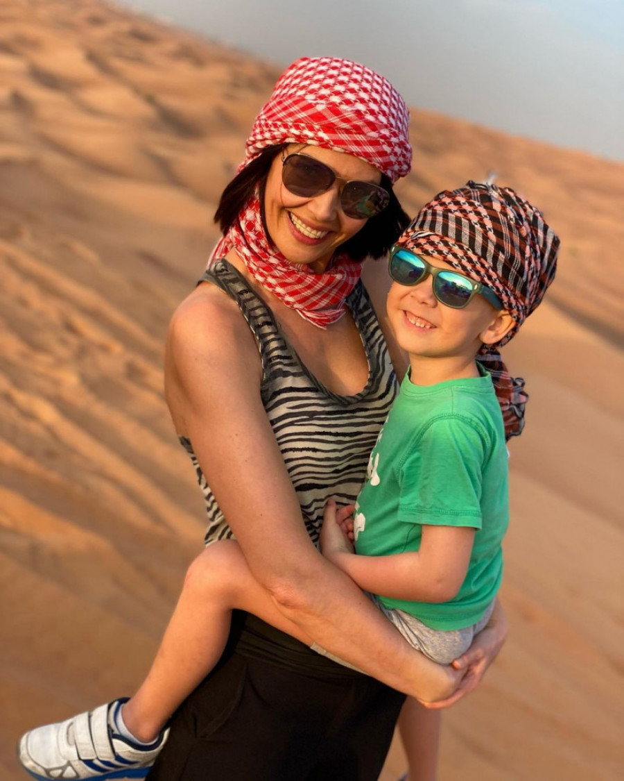 „Zalazak sunca u pustinji jedna je od najlepših stvari koje sam doživela. Ali ako pitate mališu, nikako ne kretati u pustinju bez starijeg brata, jer ko će da te nosi uzbrdo posle sankanja po dinama“, napisala je popularna praktična žena uz fotografiju na kojoj u zagrljaju drži Jana, koji će u julu napuniti pet godina.