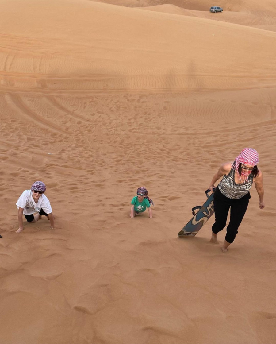Sinovi Nataše Pavlović su se za avanturu adekvatno pripremili, odnosno nisu zaboravili da ponesu naočare za sunce i marame kojima su zaštitili kosu od peska.