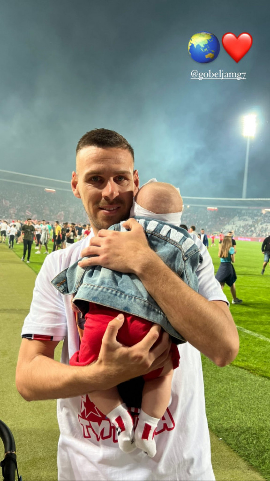 Marko Gobeljić nije ni pokušavao da sakrije sreću i radost, naročito jer su mu u najvažnijem trenutku one bile tu. Supruga Katarina Grujić i ćerka Katja bodrile su tatu iz lože, a kada je kruna osvojena, spustile su se i na teren.