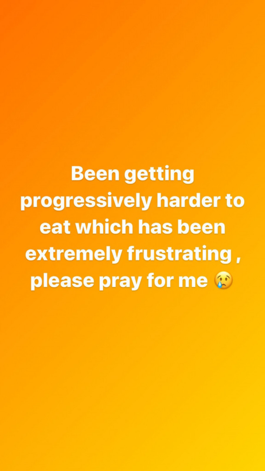 “Imam sve više problema dok jedem, jako sam frustriran, molite se za mene”.