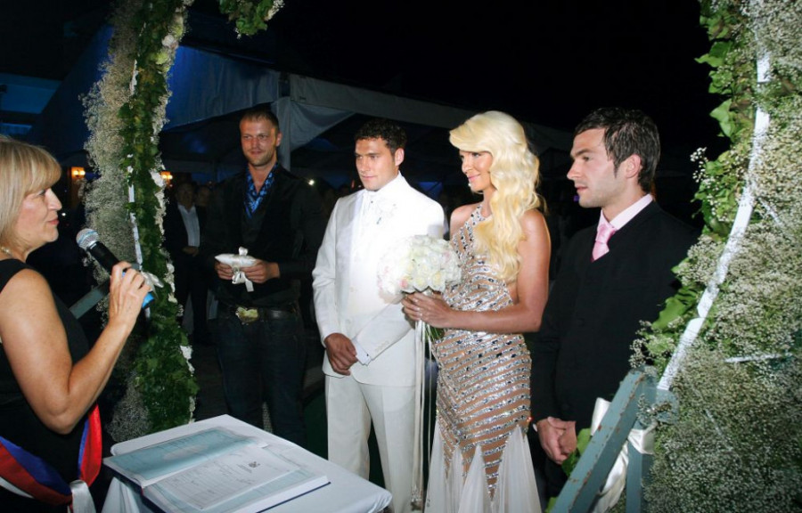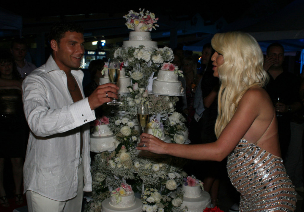 Prvi ples bio je nešto najromantičnije što smo do tada videli. Duško je poljupcima „popio“ Jelenine suze, dok mu je ona šaputala koliko ga voli. Usledilo je veliko veselje na kome su se smenjivali aktuelni folk hitovi. Mladoženja je ostao bez košulje, kumovi su se popeli na stolice, gošće su se prepustile plesu... Šampanjac je tekao u potocima. I torte su bile za pamćenje. Jedna, visoka skoro dva metra, bela, elegantna, a druga crvena, teška trideset kilograma, identična onoj koju je na svadbi imala Eva Longorija.