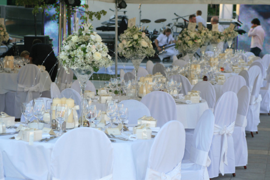 U kristalnoj dvorani hotela, šef kuhinje i menadžer dovršavali su detaljan plan o izgledu raskošne trpeze. Posude od leda, kruške punjene gorgonzolom i jagode sa spanaćem bili su uvertira u gastronomsku avanturu sa majstorski pripremljenim jastogom, ćuretinom sa sosom od višanja i teletinom u egzotičnom okruženju. Srebrnina i satenske mašne pobrinule su se za estetski segment slavlja, a spektakl su uveličale bele svilom uvezane kutijice sa poklonima za goste, srebrni i kristalni svećnjaci, engleski porculan, led-ekrani, providna bina i rasveta u stotinama boja.